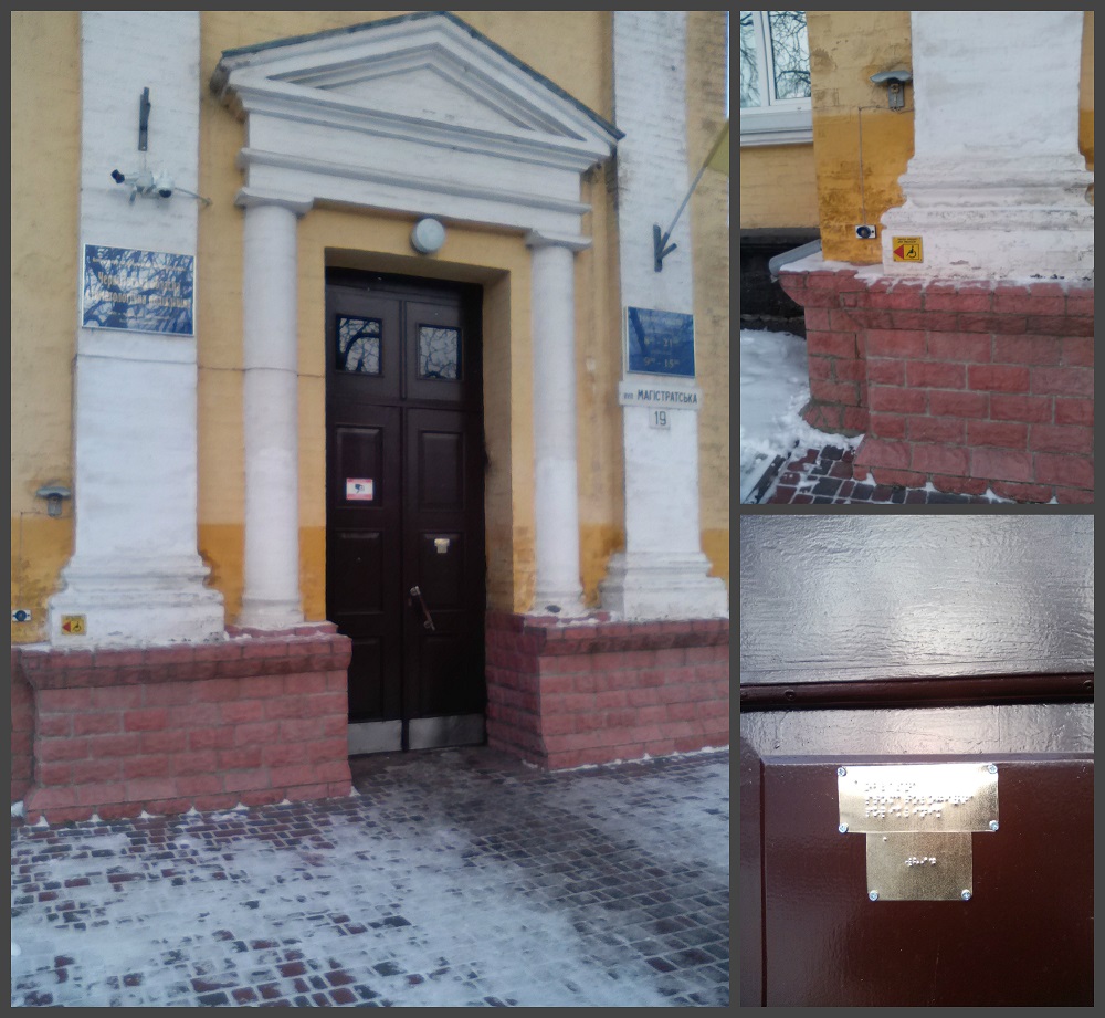 Вхідна частина будівлі (ширина дверей, навність безбар’єрного та безперешкодного проїзду, маркування для незрячих) |